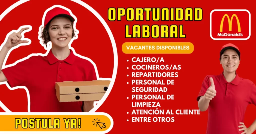 ¡ÚNETE A LA FAMILIA MC DONALD’S Y DA EL PRIMER PASO HACIA UNA CARRERA EXITOSA EN LA INDUSTRIA DE LA RESTAURACIÓN! 🍟🍔